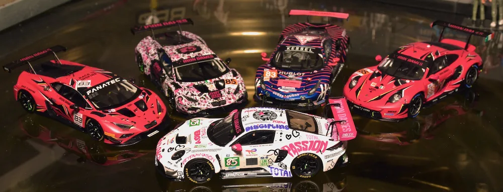 2023 Spa-Francorchamps 24h, Lamborghini Huracán. The Iron Dames, an all-female line-up, achieved historic victories and break throughs in world endurance racing by winning a race for the World Championship in their pink GTE Porsche. Last year they won their category in Spa with a Ferrari 488 and in 2023 the dames competed with a pink Lamborghini Huracán Evo2 GT3. The speed was there, Doriane Pin qualified 12th overall and 4th in the Bronze category, but their race ended in the gravel trap with 10 hours to go.