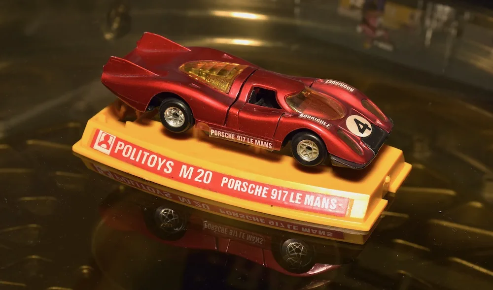 In 1971 my father took me to the cinema and I saw Steve McQueen’s “Le Mans”. Afterwards I got a model car and of course I chose a Porsche 917, not in Gulf livery unfortunately but a metallic red one. I played with it until it was worn and finally threw it away, but the love for endurance racing and specially Le Mans lasted. Recently I saw a similar model on eBay and bought it.