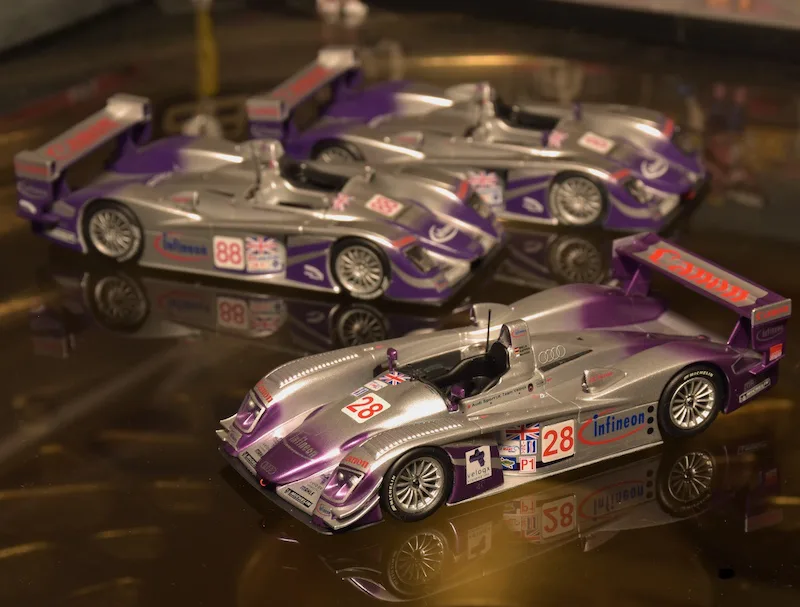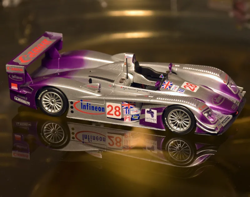 2001 Le Mans 24h, Champion Racing Audi R8. American Champion Racing was one of the first customer teams from Audi. They had a very strong international driver line-up and a great recognizable livery. Unfortunately the car retired with a broken engine, very rare for the usually reliable Audi R8s.