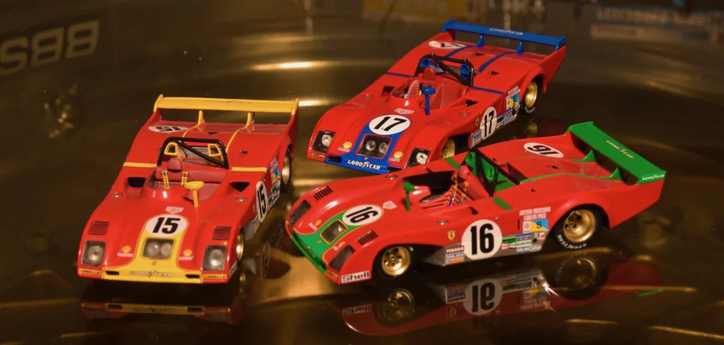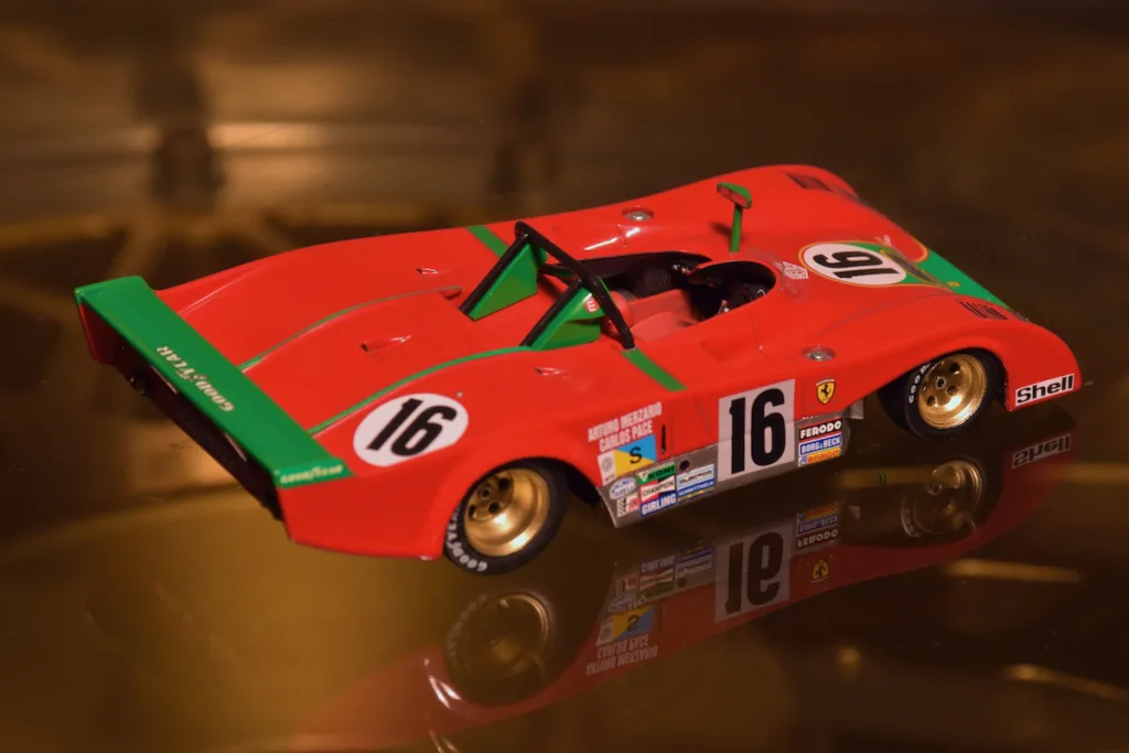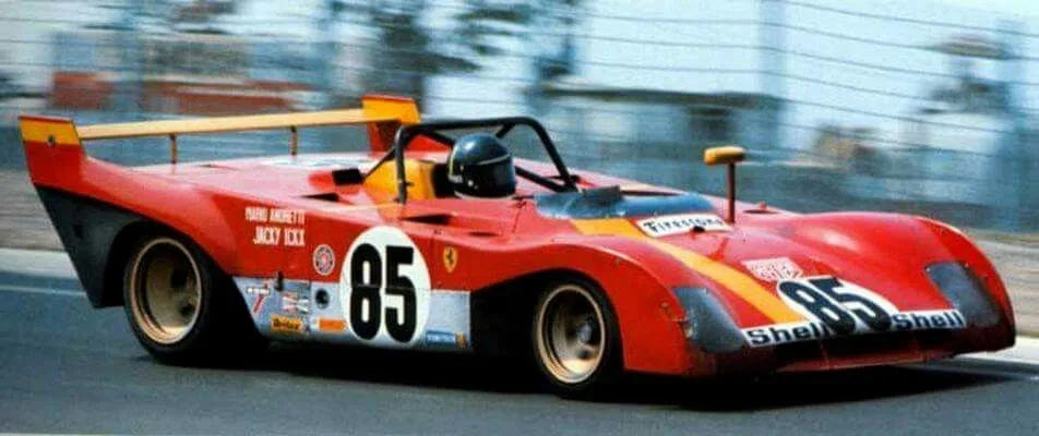1972 Daytona 6 hours, Ferrari 312 PB. The 3-liter Ferrari 312 PB won al world championship races in 1972 but Le Mans. Enzo Ferrari thought that a 24 hour race was too long and didn’t compete in Le Mans. Matra won the 24 hour race. Daytona was only 6 hours this year, so Ferrari raced and won.