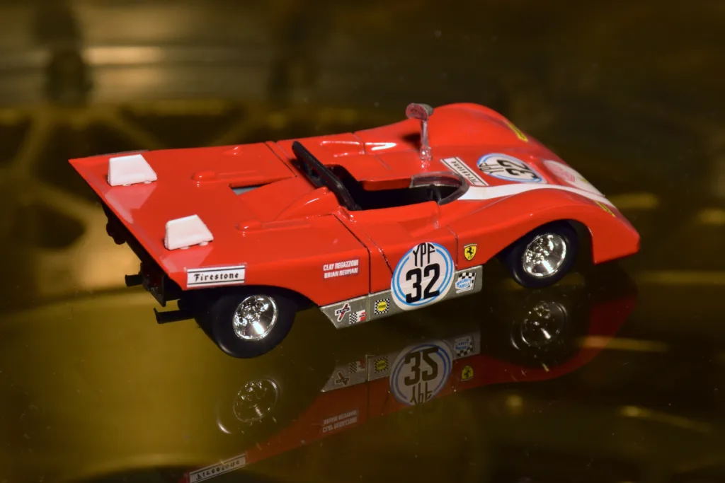 S.E.F.A.C. Ferrari 312 PB – 3.0 liter Ferrari Tipo 623/001 V12 180º, approx. 460 hp. Firestone tires. Weight 665 kg. Aluminum monocoque, chassisnr. #0884