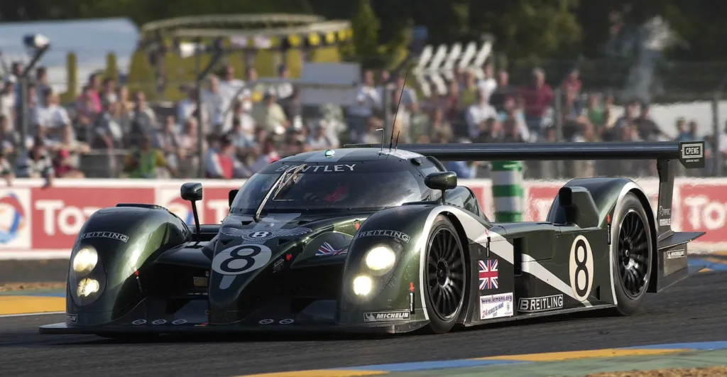 2003 Le Mans 24h, Bentley Speed 8. Joest Audi didn’t participate at Le Mans, the star drivers such as Tom Kristensen and Rinaldo Capello were available for Bentley. Also, the privateer teams that raced Audi R8 showed somewhat less pace than in previous years, probably Michelin played a role in this. The way was clear for Bentley to win Le Mans and they did with a double podium and even completed 2 laps more than the winning Audi in the previous year. Mission accomplished and Bentley disappeared again from the circuits.