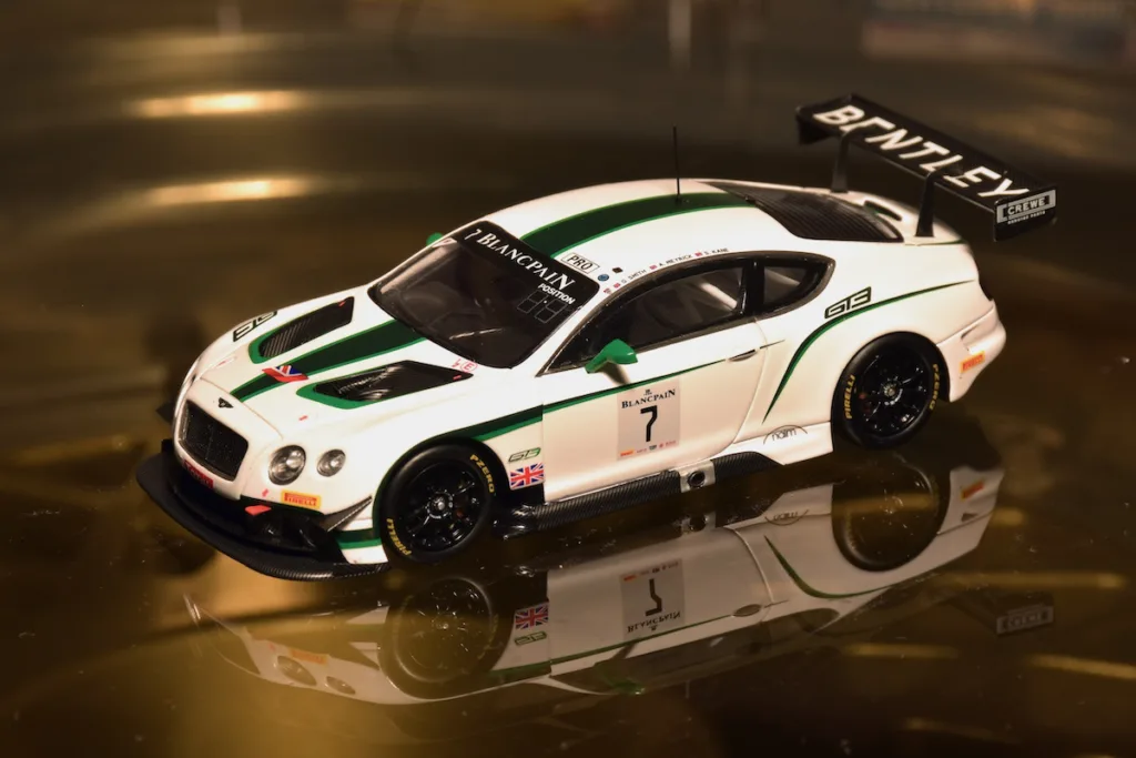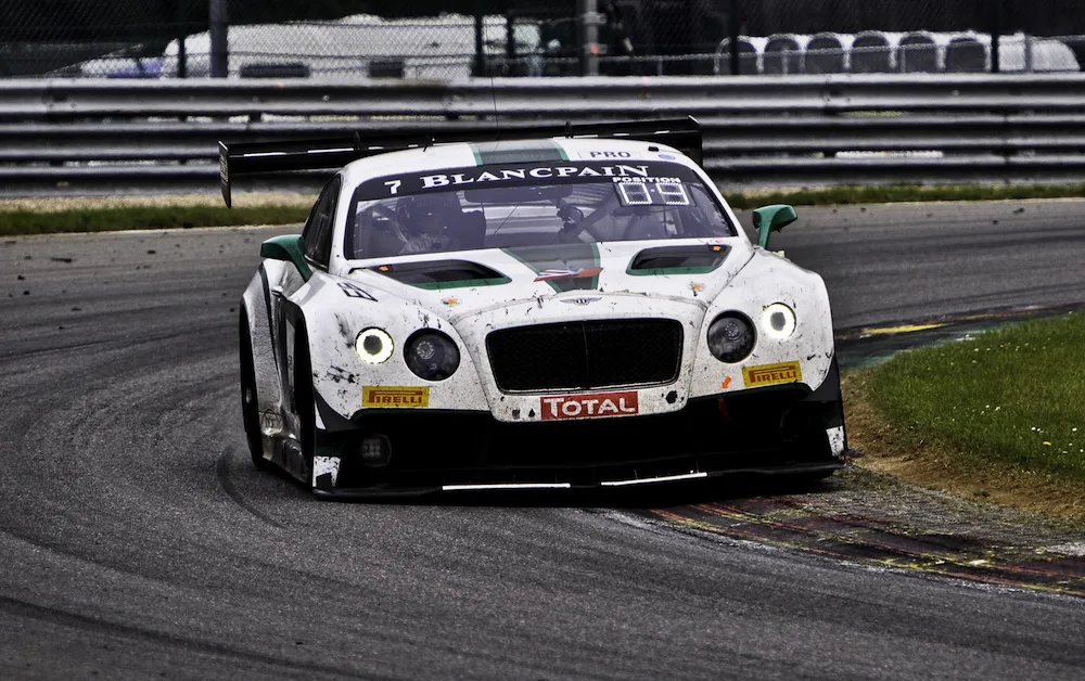 2013 Spa-Francorchamps 24h, Bentley Continental GT#. The entry list of the Blancpain Series already was a colorful collection of exclusive cars, but in 2014 a very special one joined; the Bentley Continental GT3. Malcolm Wilson’s M-Sport did a tremendous job to build a competitive racing car, the GT3 is 1.000 kg / 2,200 lbs lighter than the road going version. 2014 Was a learning year for the British but they already did very well, both cars finished the 24 hour race.