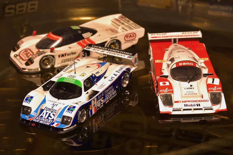 1994 Le Mans 24, Courage C32LM – Porsche. The 1994 Le Mans was the last time that the legacy Group C cars participated. The power was restricted. Courage entered two C32’s with the proven flat-6 Porsche engine. It did well, this #2 taking pole-position, unfortunately it was the Porsche engine that caused a retirement. The race went on between the Group C Toyota and GT1 Dauer.