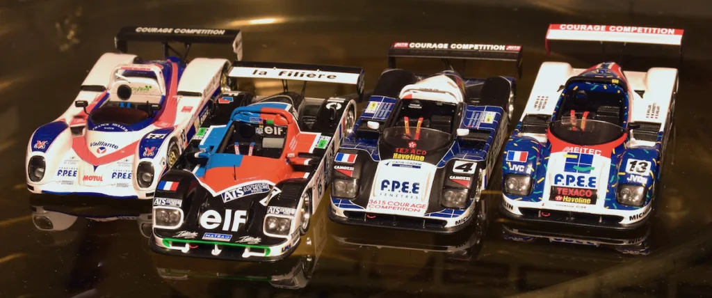 Yves Courage had a modest racing career before he began to build his own cars. The first were group C cars that were called Cougar, later he would change this to his surname Courage. His latest creations were adapted by Pescarolo and raced under that name. Similar happened with the Courage based cars that Acura raced in the USA, these were homologated as Acura ARX. In 2009 Courage was sold to Oreca.