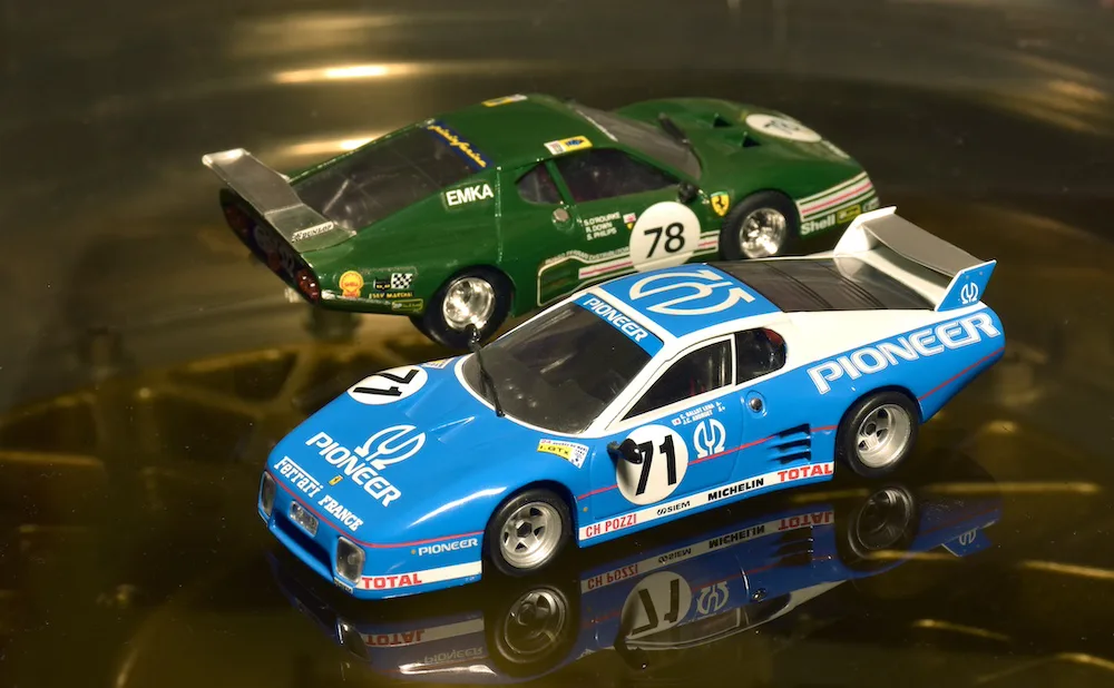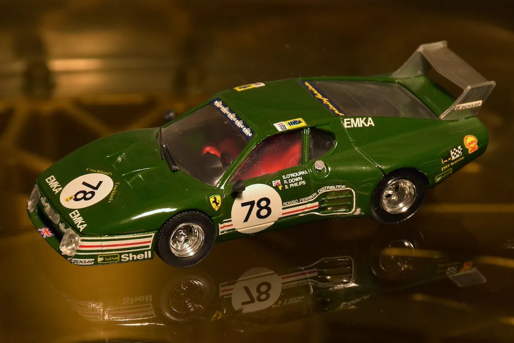 1980 Le Mans 24h, Ferrari 512 BB LM. Te EmKa British racing green car from Pink Floyd manager Steve O’Rourke finished only 23rd after they crashed and repaired the car with bodywork from the red Bellancauto Ferrari. The Pozzi Ferrari failed to finish.