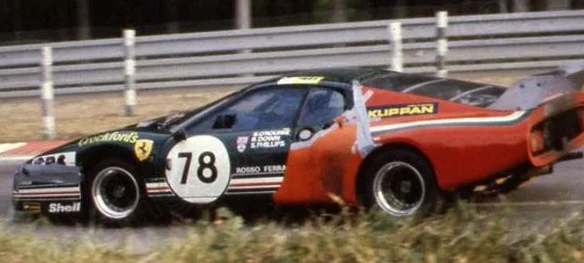 1982 Daytona 24h, N.A.R.T. Ferrari 512 BB LM. Unfortunately, the beautiful Ferrari was no match anymore for the turbo-engined Porsche 935s that were much quicker and more reliable.