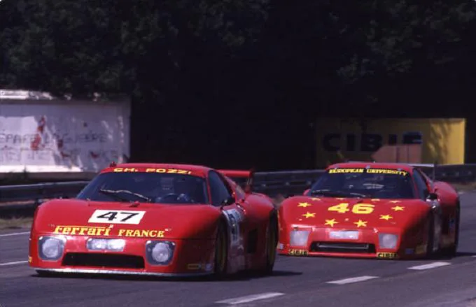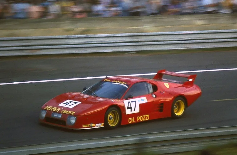 1981 Le Mans 24h, Ferrari 512 BB LM. The Ferrari 512 BB was to heavy and lacked power compared to the Porsche 935. But it reached some successes, such as this Pozzi Ferrari that reached 5th place in Le Mans 1981, winning IMSA GTX.