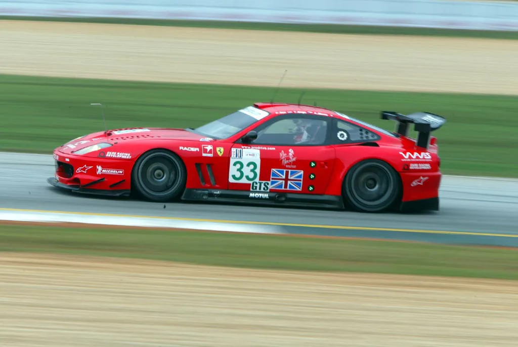 2002 ALMS Road America, Ferrari 550 GTS Maranello. This beautiful Maranello was prepared by Italtechnica and run by Team Rafanelli. It was not as successful as the Care / Prodrive cars, but did finish at the podium at Road America.