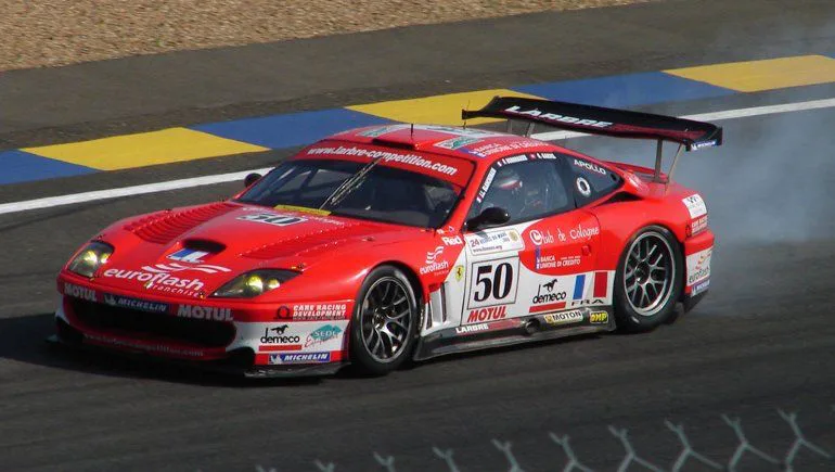 2003 Le Mans 24h, Ferrari 550 GTS Maranello. The Prodrive Ferrari spoiled the 50th anniversary of Corvette at Le Mans. The Americans had a special livery to celebrate but were beaten by this plain red Italian beauty.