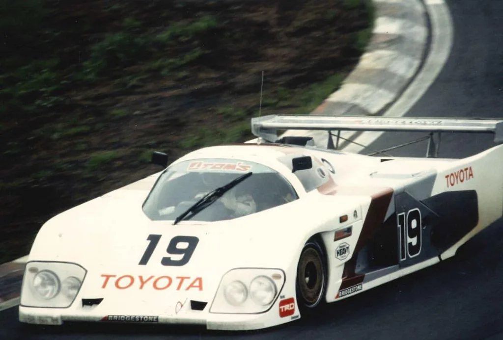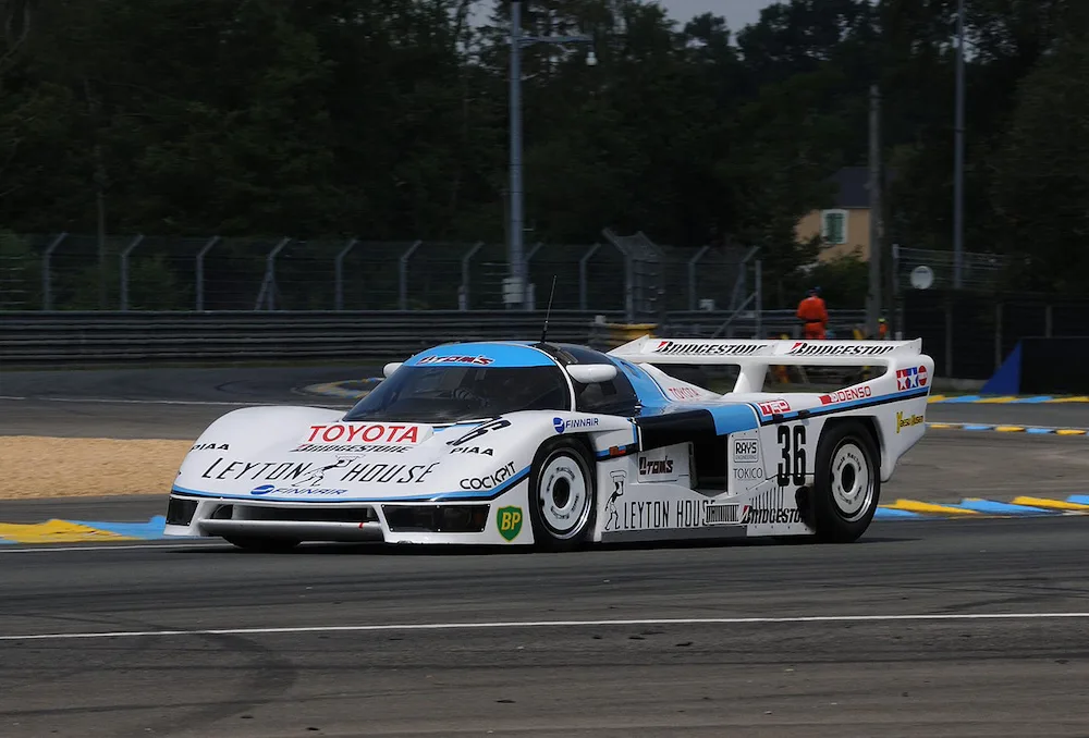 Tom’s Toyota 88C – Toyota 3S-GTM straight-4 turbo, approx. 650 hp. Bridgestone tires. Weight 880 kg. Aluminum monocoque, chassisnr. Dome #87C-009