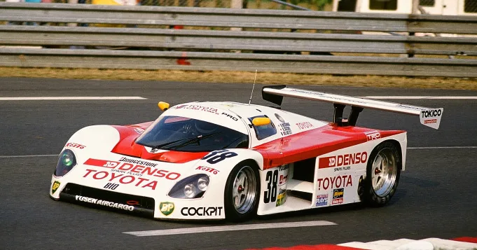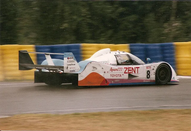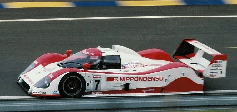 1993 Le Mans 24h, Toyota TS010. 1993 was the second and last year for the 3.5 liter group C cars. Peugeot and Toyota both entered 3 cars for the 24-hour race. The Tony Southgate designed TS010 was slightly changed since last year; new air-intakes and a different rear end where the wheel covers had disappeared. But Peugeot also introduced an evolution version of their 905 and scored an easy 1-2-3 victory. Toyota TS010s finished 4th and 8th.