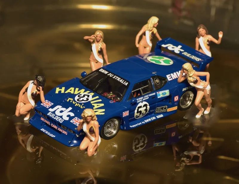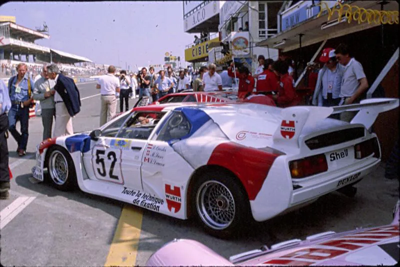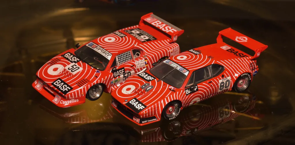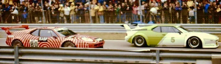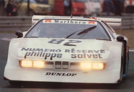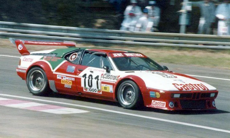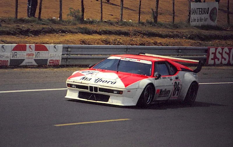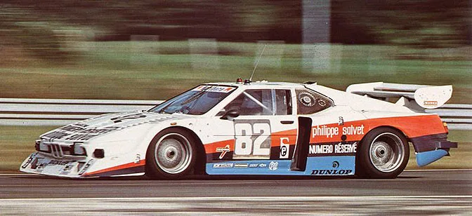 1980 Le Mans 24h, BMW M1 wide body. The BMW M1 is famous from the Procar Championship. The M1 was also converted to Group 5 and IMSA GTX specs by several chassis builders such as March, Sauber and Martini, but was still using the normally aspirated engine of the procar, it was no match for the more powerful Porsches 935. This March built M1 was slower than the normal M1’s and retired after a crash.