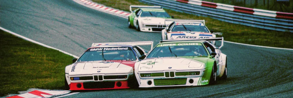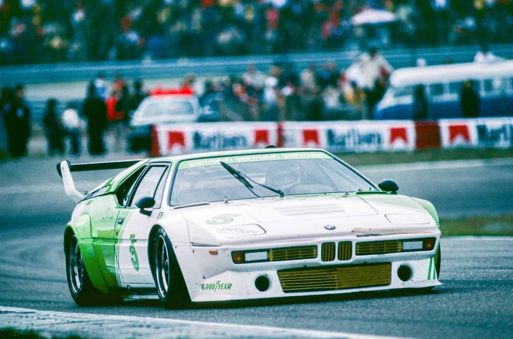 BMW Motorsport BMW M1 – 3.5 liter BMW M88/1 straight-6 injection, approx. 470 hp. Dunlop tires. Weight 1020 kg. Steel monocoque