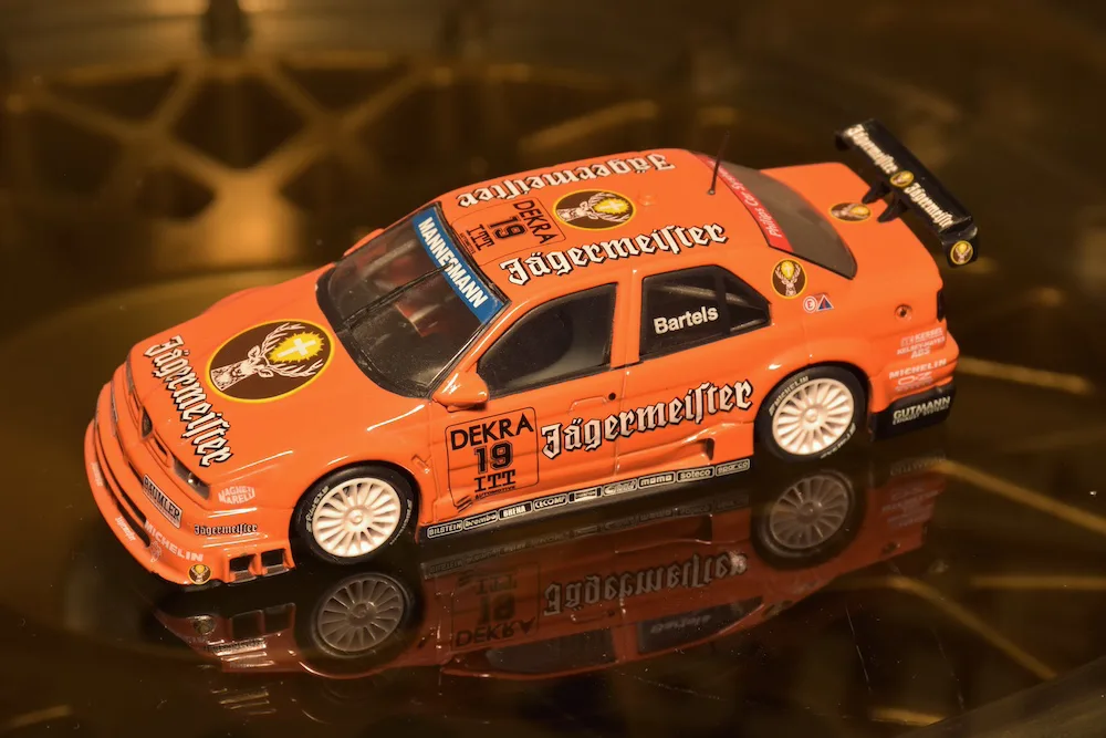 1995 DTM Championship, Alfa Romeo 155 V6 Ti. The new DTM was a battle between Opel, Mercedes and Alfa Romeo. The last one won the championship with its powerful AWD 155 in 1993, but was less competitive in 1995. This is the Jägermeister car from Michael Bartels who finished 10th in the championship.