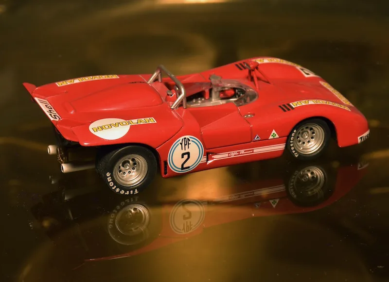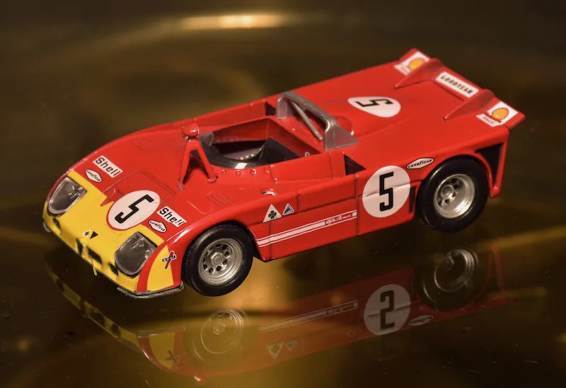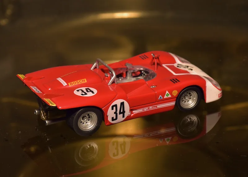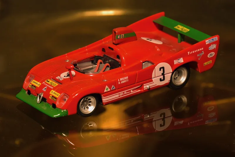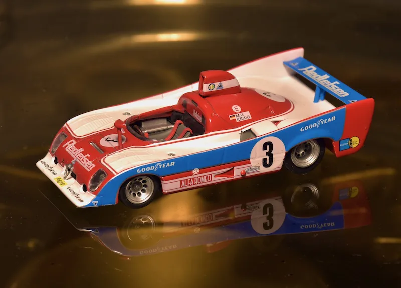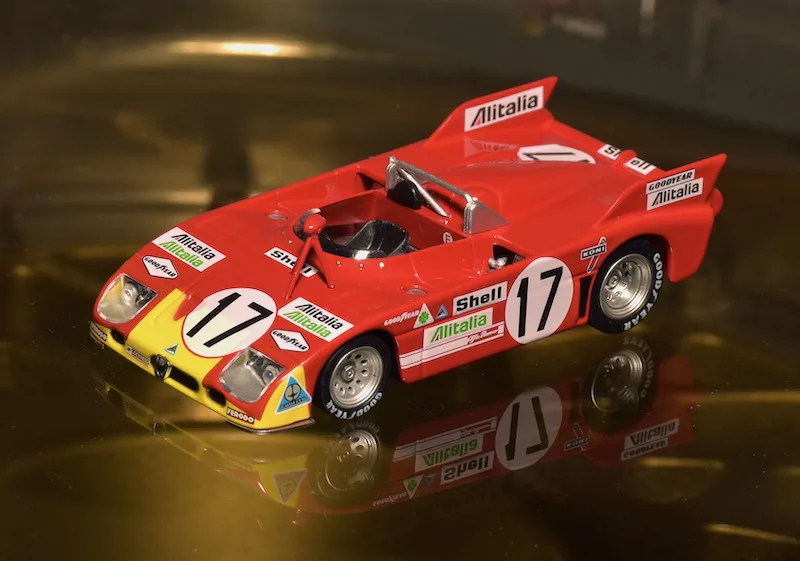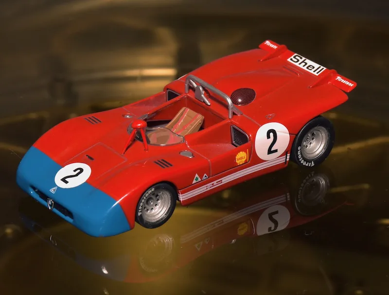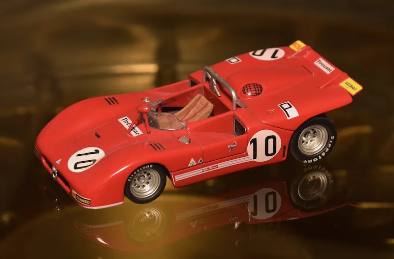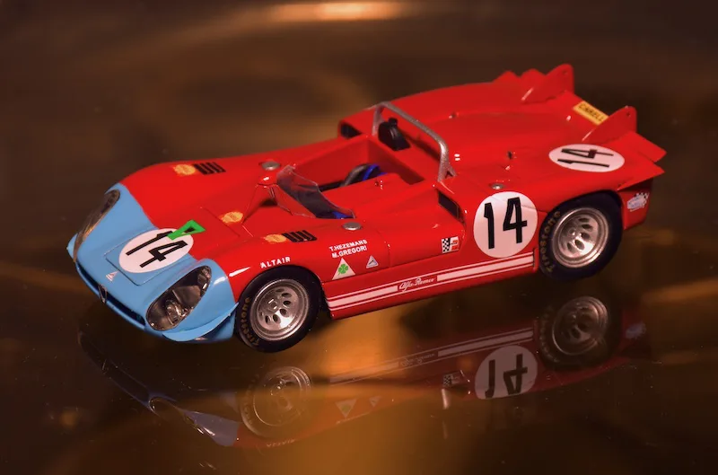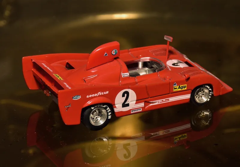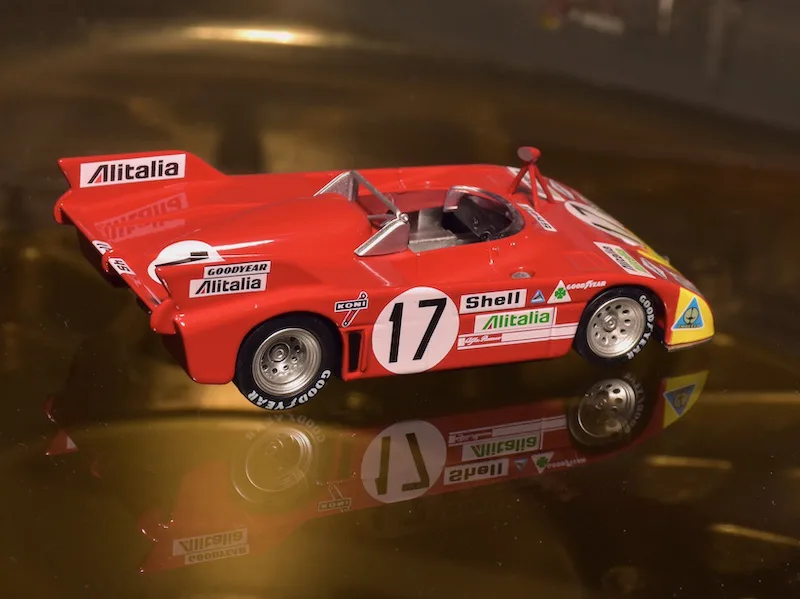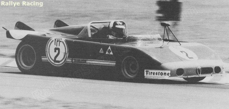 1971 Sebring 12h, Alfa Romeo Tipo 33/3. The 1971 version of the Alfa T33 was very successful right away. The Italians beat Porsche three times: In Brands Hatch, Targa Florio and Watkins Glen. At Sebring the teammates of this car finished 2nd and 3rd, this one retired.