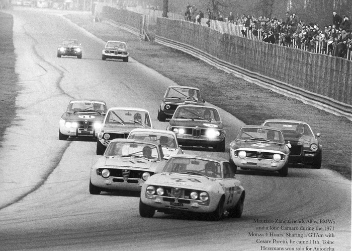 1971 European Touring Cars Monza 4h, Alfa Romeo 2000 GTAm. Toine Hezemans started the 1971 season the way he finished in 1970, with a win. Alfa Romeo took the title for makes, but the driver championship was won by Dieter Glemser in the division III Ford Capri, who took one class victory more than Toine who won five times.