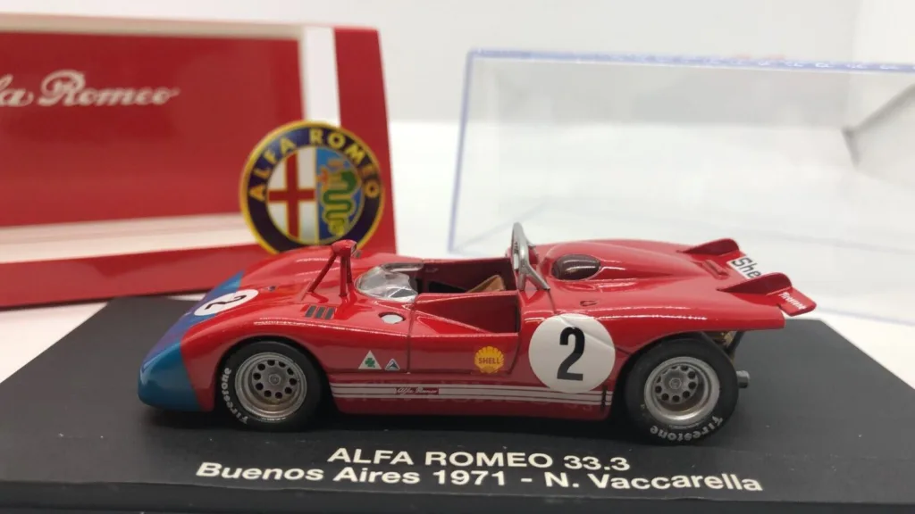 1972 Buenos Aires 1000 km “Temporada”, Alfa Romeo Tipo 33/3. The 1971 version of the Alfa T33 was very successful, beating Porsche on several occasions. It was favorite for the 1972 season but got beaten by Ferrari every occasion. At the start of the 1972 season, Alfa Romeo still used the 1971 Tipo 33/3. They finished 3rd, 4th and 9th in the first race of the season, the Temporada.