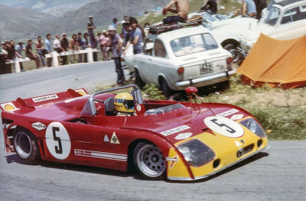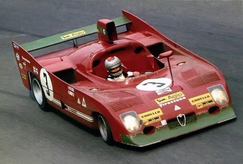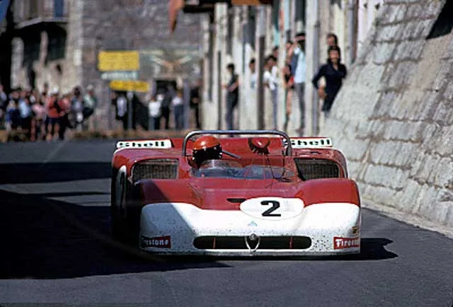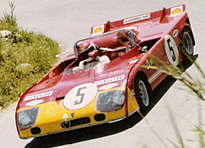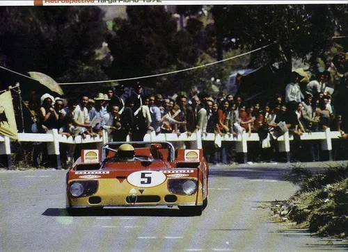 1972 Targa Florio, Alfa Romeo 33TT3. In 1972 the 5-liter sports cars had disappeared from the world championship. The fight would be among the 3-liter prototypes. In an attempt to improve the Tipo 33, Alfa Romeo changed the concept. The V8 engine remained but gained about 20 hp in power. The 6-speed gearbox was replaced by a 5-speed version to gain weight. Also new were the Goodyear tires. The biggest change was that Alfa abandoned the aluminium monocoque chassis and turned to a space frame (Telaio Tubolare). The car was approximately 50 kg lighter than the 1971 version but didn’t win. Second at the Targa Florio was one the best results.