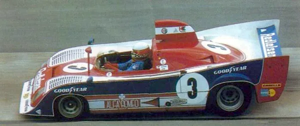 1974 Monza 1000 km, Alfa Romeo 33TT12. With their 3TT33 Alfa didn’t reach the successes they hoped. In 1974 Ferrari had left the world championship and the new Alfa Romeo with 12-cylinder engine took a triple win at the first race of the world championship at Monza. In the other races they had competition from Matra-Simca, Gulf-Mirage and Martini Porsche RSR turbo.