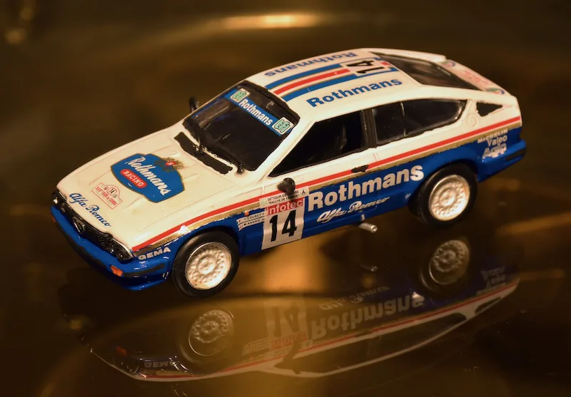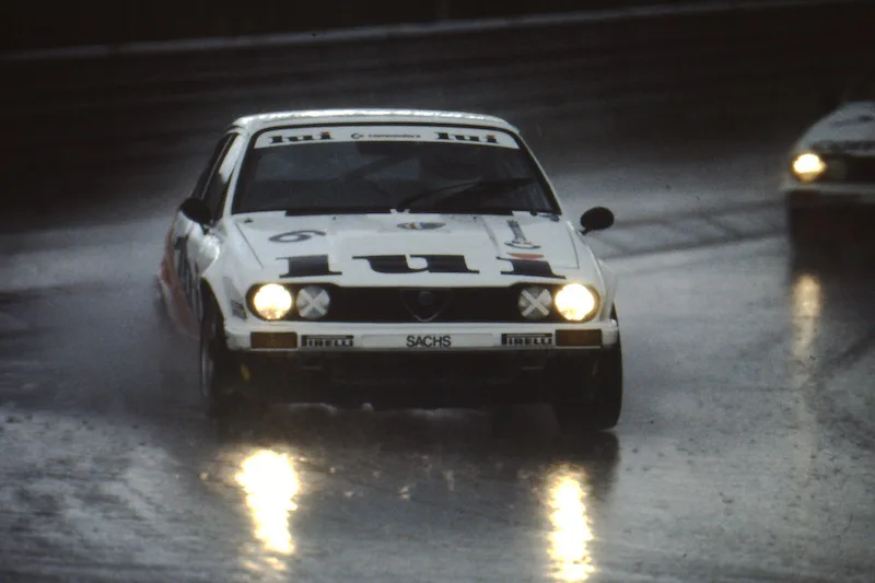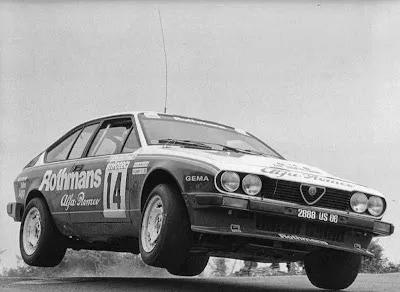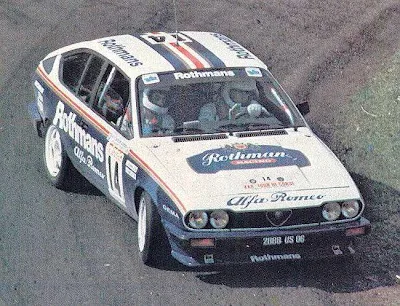 1986 Tour de Corse, Alfa Romeo Alfetta GTV6. The Tour de Corse was the 5th rally counting for the world rally championship. Unlike many other rallies, this one is completely held on twisty and narrow asphalt roads. Local hero Yves Loubet drove an Alfetta GTV6 to third place overall and first in group A. He only had two countrymen in group B cars in front of him; Bruno Saby in a Peugeot 205 turbo 16 and Francois Chatriot in a Renault 5 turbo Maxi. Fun fact: 30 from 31 finished teams were all French.