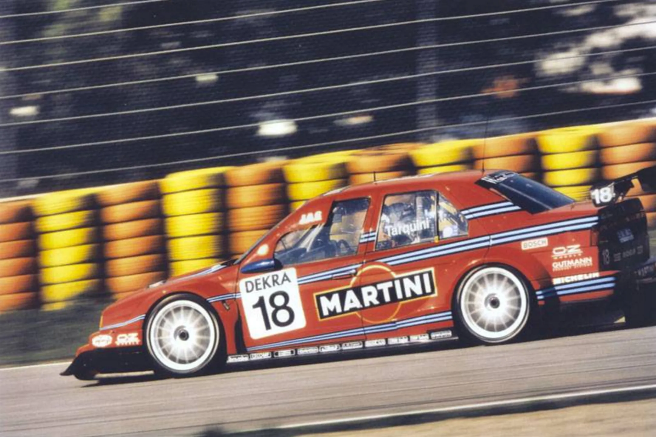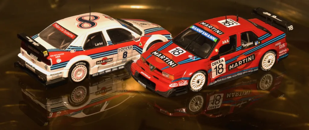 1996 ITC Championship, Alfa Romeo 155 V6 Ti. The DTM championship was very popular and the organizer changed it in International Touring Car Championship (ITC). De series expanded to races in other European countries such as Italy, France, UK, Finland and Portugal but also included races at Interlagos and Suzuka. The costs were much too high and it was the last season of the DTM in this format. It would last to 2000 before a new series was launched. Gabriele Tarquini was another former F1 driver that raced the DTM/ITC. The Alfa Corse cars raced with support from Martini in the white Alfa’s. JAS Motorsport, Tarquini’s team, had Martini sponsoring on their red car for the Mugello race. The other races, Tarquini raced in silver and red and managed a win at Silverstone.