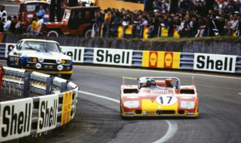 1970 Le Mans 24h, Alfa Romeo Tipo 33/3. Previous versions of the Alfa Romeo – the 33/2 – had a 2-liter engine. In 1969 Alfa Romeo introduced the 33/3 with powerful 3.0 liter V8 engine. The first two years didn’t bring much success yet, this beautiful long tail version got disqualified because of a push start. The other 3 Alfa Romeo’s all had to retire. One crashed and two had an engine failure.