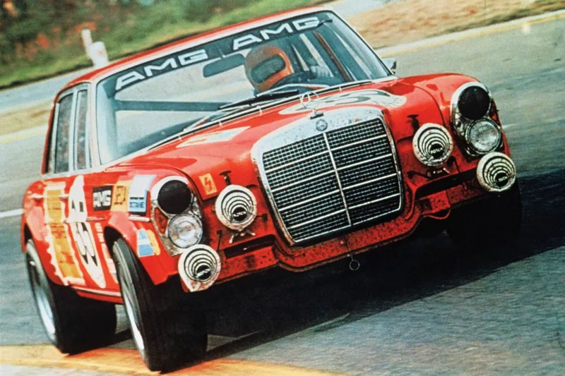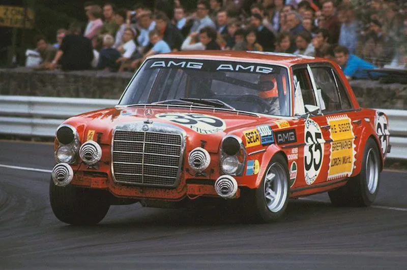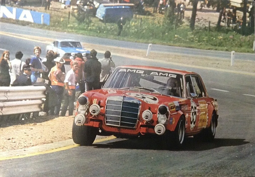 1971 Spa-Francorchamps 24h, Mercedes-Benz 300 SEL 6,8. Auftrecht and Melger (AMG) took the Mercedes 300 SEL 6.3 and enlarged the engine to 6.8 liters, delivering 420 bhp. The flashing red car was much bigger and heavier than the cars it competed against, it got the nickname “Rote Sau”, meaning Red Pig. Heyer and Schickentanz competed the 24 hours race at Spa-Francorchamps 1971 and surprisingly finished 2nd behind the sole remaining factory Ford Capri RS 2600. Unfortunately the original car has been scrapped, but in 2006 AMG built a replica that is now used for shows and demonstration runs.
