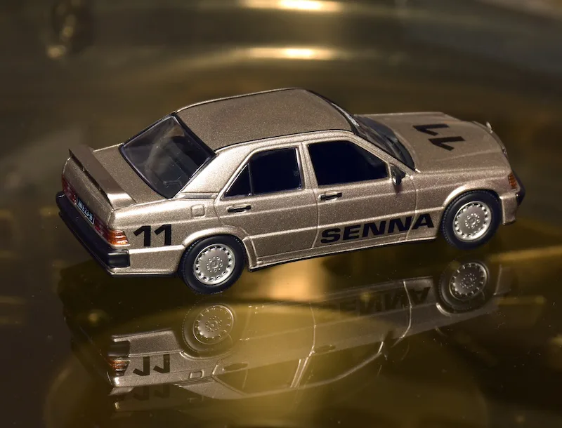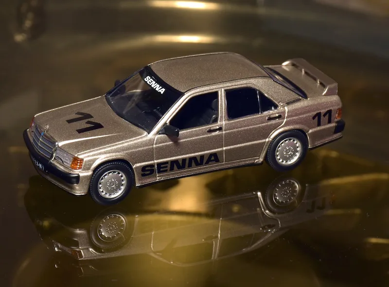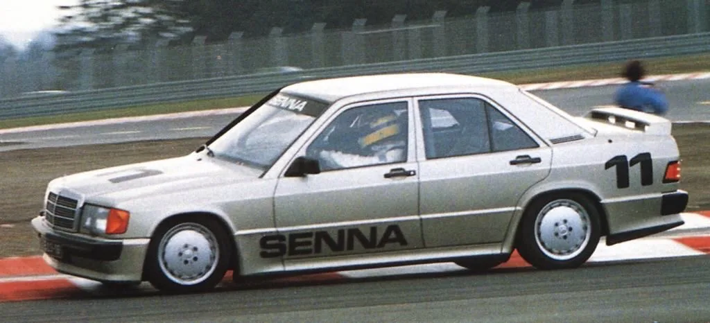 1984 Nürburgring Race of Champions, Mercedes 190E 2.3-16. The “Eröffnungsrennen” (Opening Race), was an exhibition race held at the Nürburgring GP-Strecke to celebrate the opening of the new circuit. It featured 20 of the world’s top drivers including 9 of the fourteen Formula 1 world champions still alive at the time (and 2 future champions Alain Prost and Ayrton Senna). All drivers competed in identical Mercedes-Benz 190E 2.3-16 with minor race modifications. The 12-lap race was won by Senna (1983 British F3 champion) and was his breakthrough.