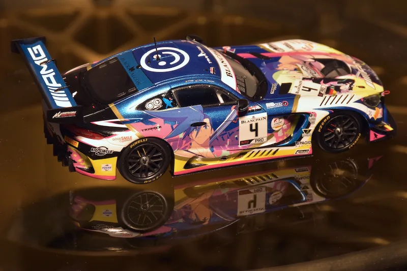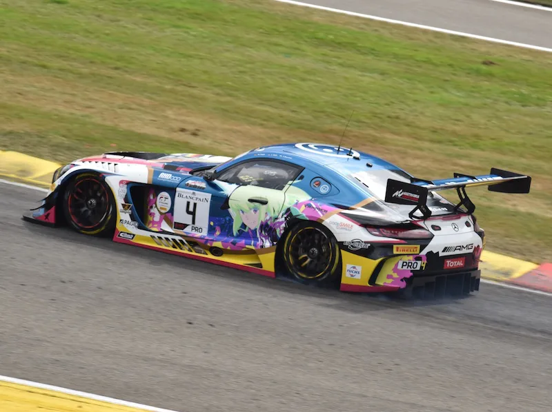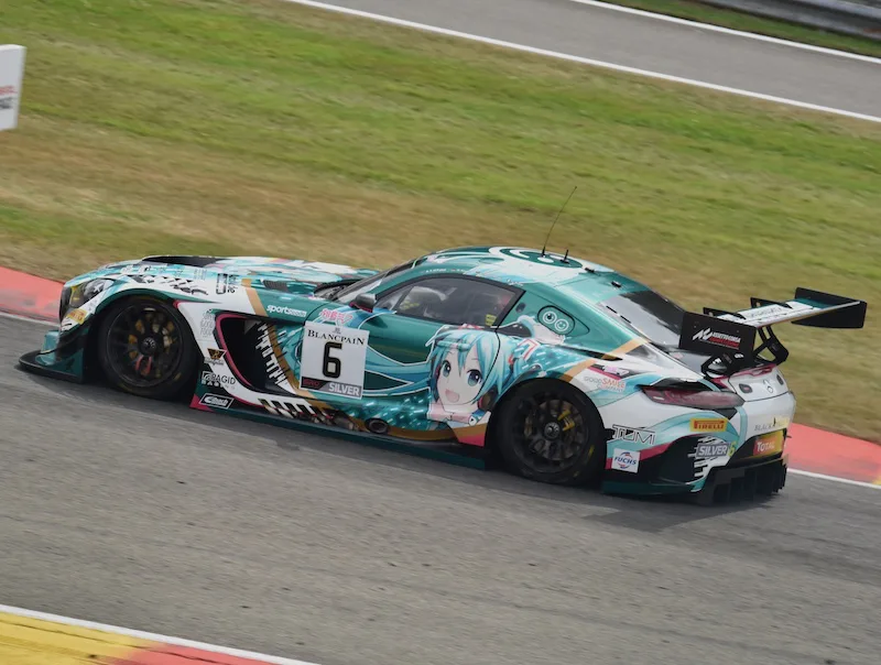 2019 Spa-Francorchamps 24h – Mercedes AMG GT3. Goodsmile Racing is famous in Japan for its connection with virtual popstar Hatsune Miku and its colorful liveries. Goodsmile entered a Mercedes in Spa (#00) and was also present on two cars from Black Falcon Racing. The #4 car finished 3rd in the 24-hour race, only 18 seconds behind the winning car!