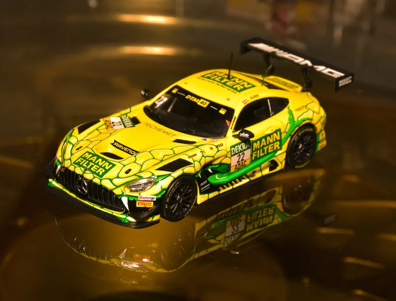 2022 DTM Championship – Mercedes AMG GT3 evo. One of the most famous touring car championships in the world, the DTM had become much too expensive and therefore also switched to the popular GT3 format. Porsche, BMW, Mercedes, Audi, Lamborghini and Ferrari are all present. Mercedes supports four teams that enter a total of 8 cars in the championship. This is the Haupt Racing Team (HRT) entered car for Luca Stolz wins the race at the Nürburgring. He also finishes 2nd twice and ends in 6th place in the championship.