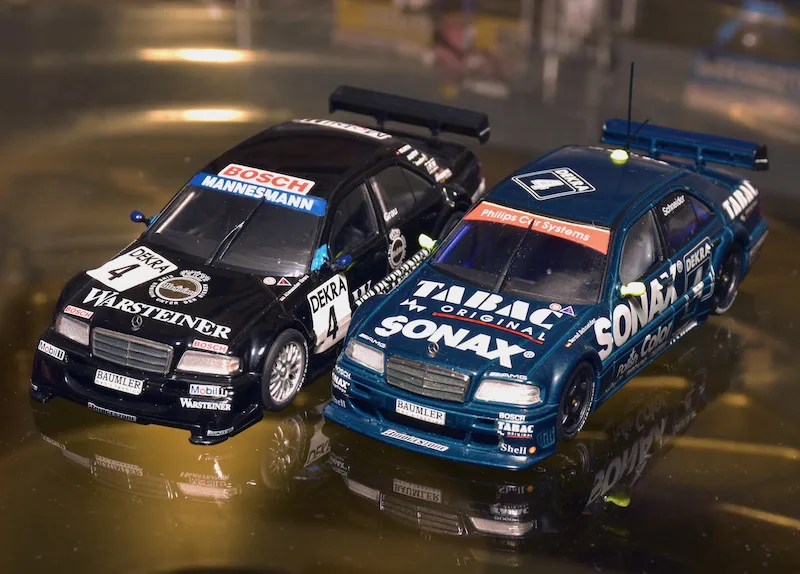 The DTM or ITC as it was called by then came to a hold and started over in 2000 as Deutsche Tourenwagen Masters, still DTM but different … Mercedes, Opel and privateer Abt entered 2-door coupes with V8 engines. I don’t have Mercedes CLK models from that period but looking for some nice bargains.