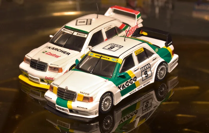1991 DTM Championship, Mercedes-Benz 190E 2.5-16 evo2. The DTM championship went to the BMW M3 (1987 and 1989) and Sierra Cosworth (1988). Then Audi came with their large V8 Quattro and took the title in 1990. In 1991, no less than 14 Mercedes’ competed in the DTM in their most competitive version, the 190E with 2.5 liter engine and evo2 specs with large spoilers. It would still last until the next year before the first title went to Stuttgart.