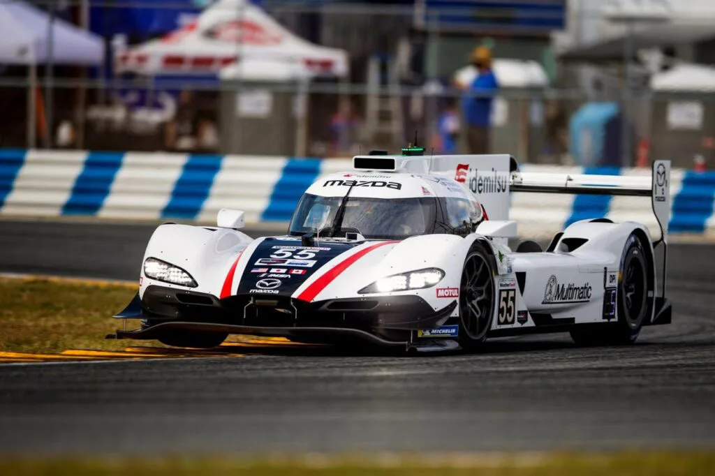 2021 Daytona 24h, Mazda RT24-P. The RT24 is the successor of the Mazda Prototype. It was built by Multimatic based on a Riley Mk.XXX LMP2 chassis for the IMSA DPi category. The car made its debut in Daytona 2017, ran by Mazda Motorsports and reached a few podiums. In 2018 Joest took over and scored a few podiums as well. In 2019 and 2020 a few wins were achieved. In 2021, The cars were again entered by Multimatic under the Mazda Motorsport banner and the RT24-P finished 2nd in the Daytona 24-hour race. The Mazda won its last race in which it competed, the Petit Le Mans with the same crew that finished 2nd at Daytona.