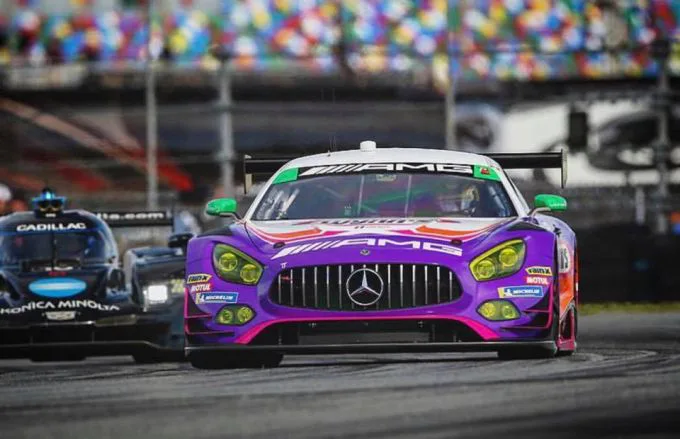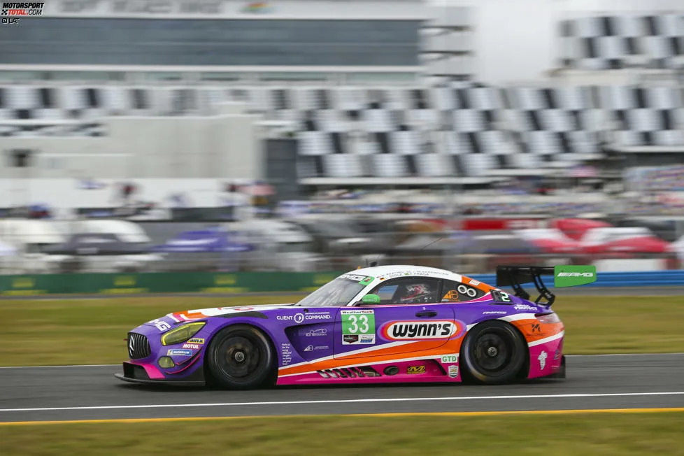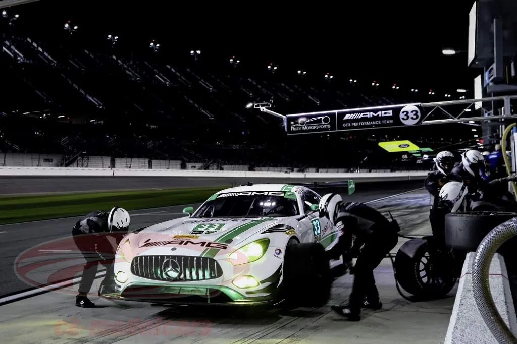 2017 Daytona 24h – AMG Mercedes GT3. The Riley Mercedes did very well in its debut in the GTD (GT3) category at Daytona. In wet conditions it even took the lead in its category, but on a dry track it lacked some topspeed.