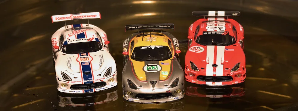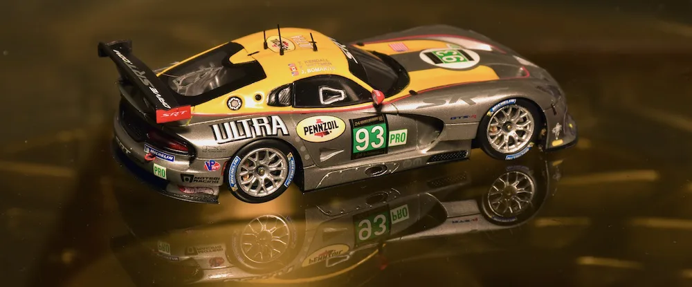 2013 Le Mans 24h, SRT Viper GTS/R. The impressive Chrysler / Dodge Vipers dominated GT racing end of the last century. Even after the works support stopped, the mighty V10’s remained succesful in the hands of privateers for some years. Now Chrysler tries again with the new Viper. SRT Motorsport enters 2 cars that are developed by Riley in the American Le Mans Series and at Le Mans. Both cars make it to the finish but way back.