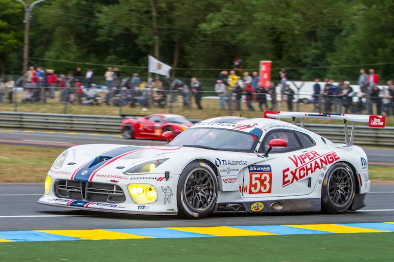 2015 Le Mans 24h, SRT Viper GTS/R. Ben Keating, owner of dealer Viper Exchange, manages to get one of the Riley prepared factory cars and brings it to Le Mans. They do well but have to retire with a broken gearbox not long before the end of the race.