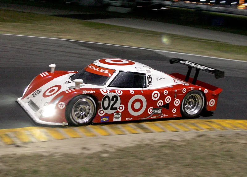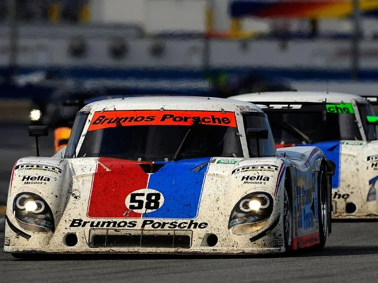 2009 Daytona 24h, Riley Mk XI – Porsche. Daytona Prototypes exist since 2003. Great equality in chassis, restricted engines and no exotic materials are the keywords. In the beginning there was some criticism because of the strange looking cars but that has disappeared. The class offers full grids of bright coloured cars and great motorsport. The 2009 Daytona winner was this Brumos Riley with a Porsche engine.