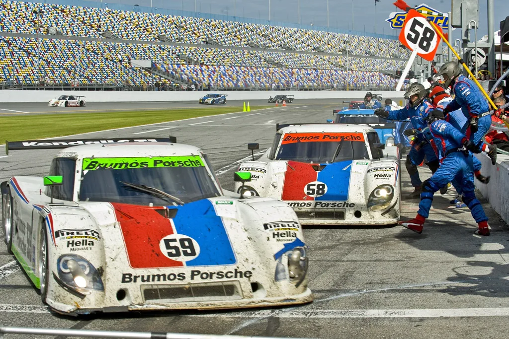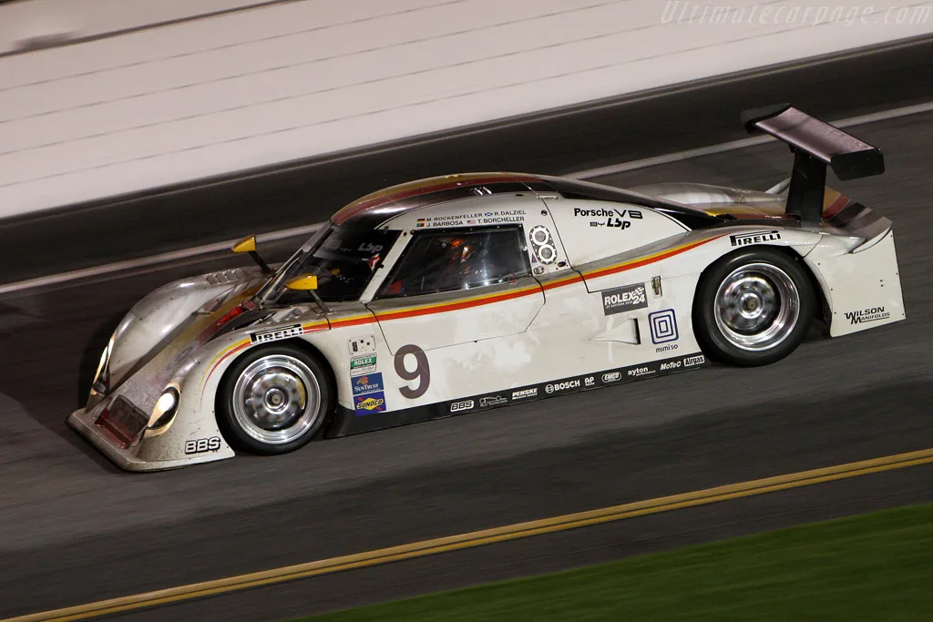 2009 Daytona 24h, Riley Mk XX – Porsche. The famous Penske Racing team that won so many titles in sports cars and Indianapolis competes with this Riley-Porsche. Three works drivers from Porsche piloted the car. They missed pole position by 1/1000 second and finish the race sixth after leading it after the start.