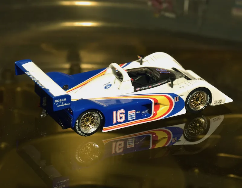 Riley & Scott Mk IIIC – 6.0 liter Ford Yates V8, approximately. 600 hp. Goodyear tires. Weight 920 kg. Steel space frame with composite panels, chassisnr. R&S #01-005