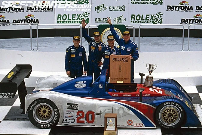 1997 Daytona 24h, Riley & Scott Mk III – Ford. Dyson Racing was R&S customer since 1995. They ran two cars in the IMSA Championship powered by Ford V8 engines. The #20 car won at Daytona while this #16 had to retire.