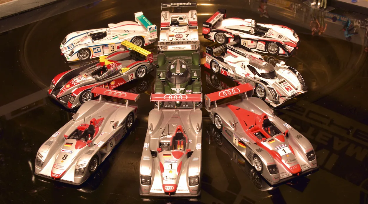 2001 Le Mans 24h, Joest Audi R8. In 2000, the red Audi won in front of the yellow one. The black was third. In 2001 Joest Audi entered only two cars, additionally, both Stefan Johansson and Champion Racing had a 2000 spec Audi R8. Again the red Audi won, the yellow was second. The Audi based Bentley was third. The race was run in torrential rain and only 321 laps were completed against 369 in the previous year.