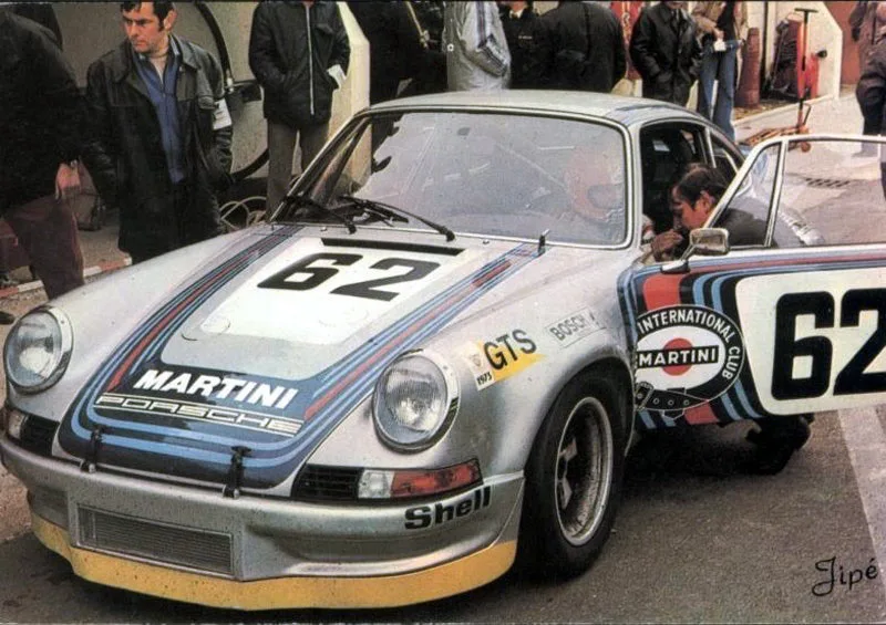 1973 Le Mans 4h, Porsche 911 Carrera RSR. The Martini Porsche competed in the 4 hours of Le Mans, a non-championship race held in April on the same track as the 24-hour race. Van Lennep & Müller took pole position and the overall victory ahead of a Porsche 910 prototype and a fair amount of Ferrari 365 GTBs.