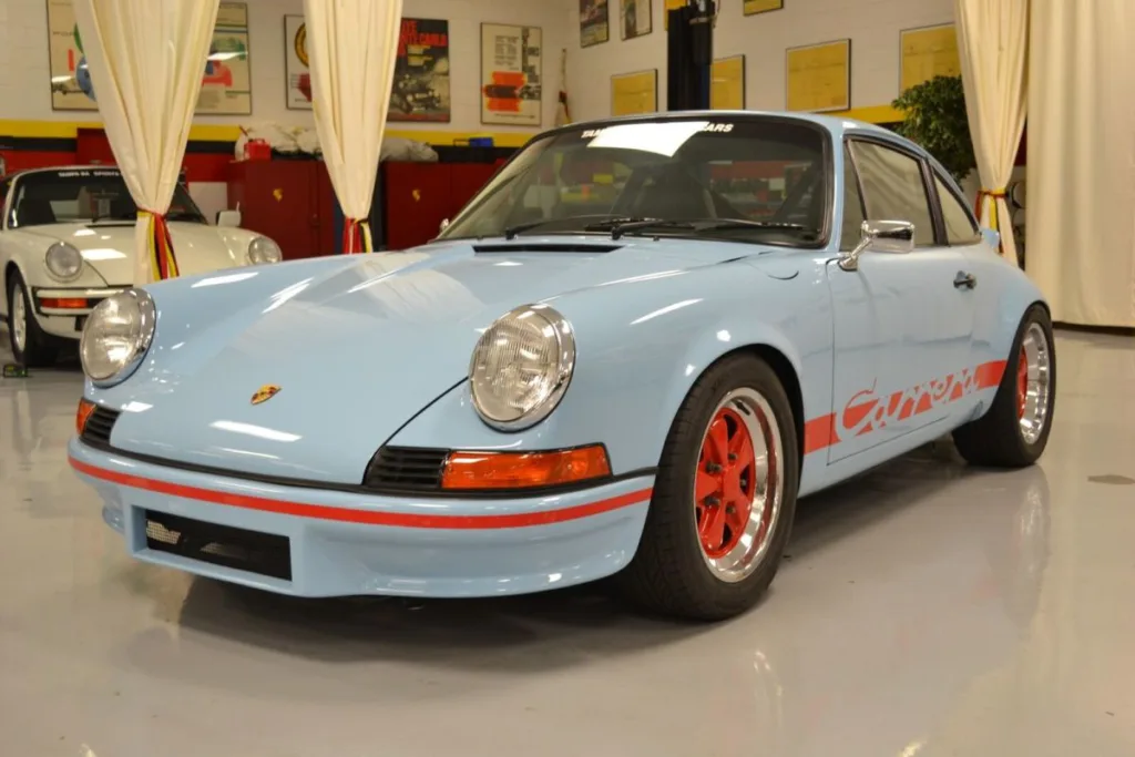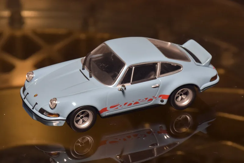 1973 Porsche 911 Carrera RS. The 911 was a popular GT but improve its performance Porsche designed the RS. Based upon that it made the lightweight RSR version. One of the cars built for homologation was a car in the colors “gulfblue and indianred”.