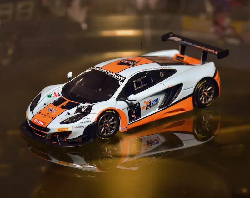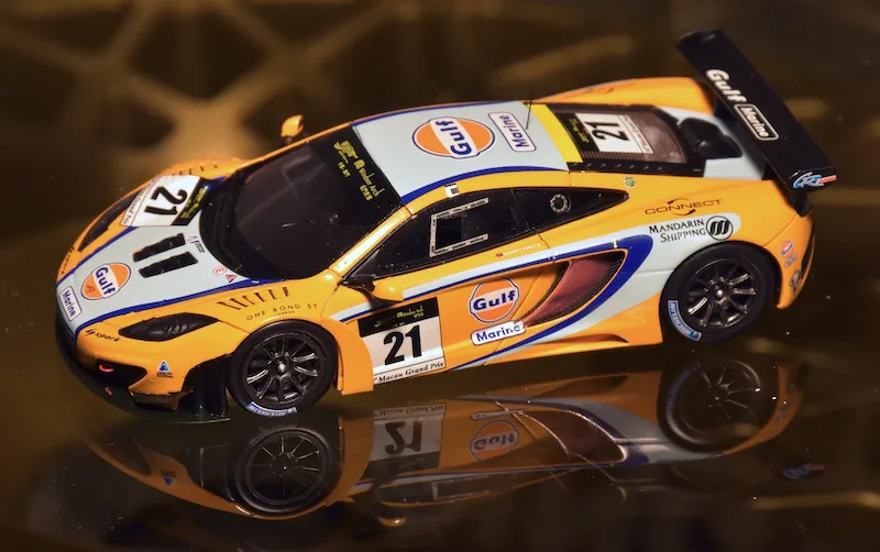 2011 Macau GT Cup, McLaren MP4-12C GT3. McLaren once built the fastest and best GT ever, the F1 GTR. This MP4-12C is much cheaper and being built in larger numbers. Of course a racing version is developed also. This GT3 version has less power than the street car, but is lighter and stiffer. Danny Watts scores the car’s first podium by finishing 3rd in the Macau GT race in 2011.