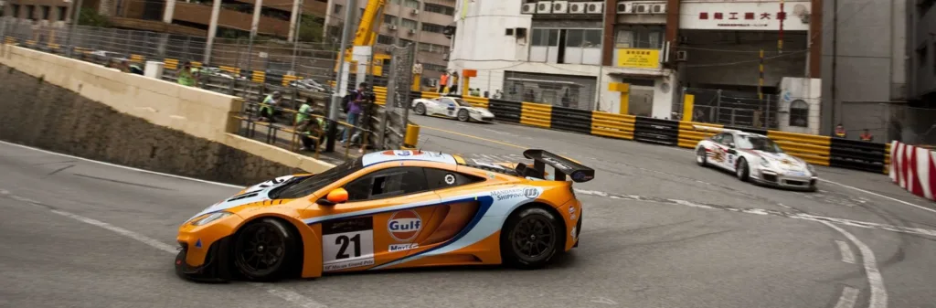 2013 Macau GT Cup, McLaren MP4-12C GT3. The race through the super fast but narrow streets of Macau is one of the highlights of the season; close racing, spectacular crashes and Eduardo Mortara who scores his third victory in a row and by now earned the nickname “Mr Macau”. Danny Watts finishes third after two third places in the previous years.