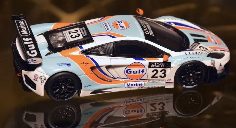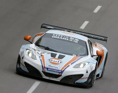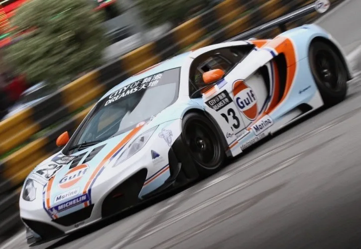 2012 Macau GT Cup, McLaren MP4-12C GT3. Danny Watts again races in the narrow streets of Macau with a McLaren in Gulf livery. Again he finished 3rd and again victory goes to Eduardo Mortara in his Audi R8 LMS GT3.