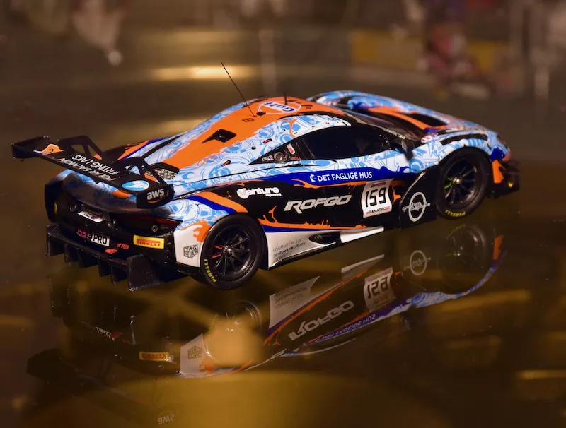2023 Spa-Francorchamps 24h, McLaren 720S GT3 evo. The Garage 59 McLaren 720S GT3 evo was one of the most beautiful and impressive cars in the Spa 24h race, but it didn’t bring luck. The Gulf / ROFGO sponsored car qualified only 41st and retired with suspension failure. The ROFGO advertising refers to the enormous collection of Gulf Racing cars that is owned by Benjamin’s father Roald Goethe.