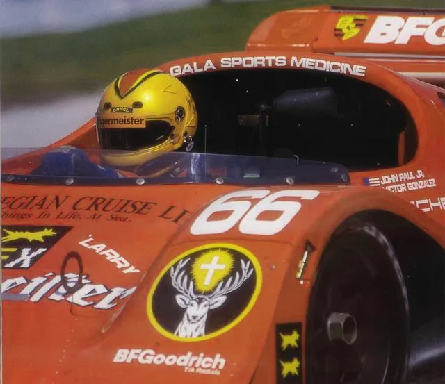 1991 Miami 2h, Gunnar 966 – Porsche. Kevin Jeanette built this Gunnar Porsche 966, the world’s first WSC Sports Car. The car was based upon the chassis of a Porsche 962 and also has its engine. The car raced between 1991 and 1993 but never achieved great succes. Typical Gunnar style; the car had a different livery every race. In Miami it had the famous orange Jägermeister livery that so many Porsches before had worn.