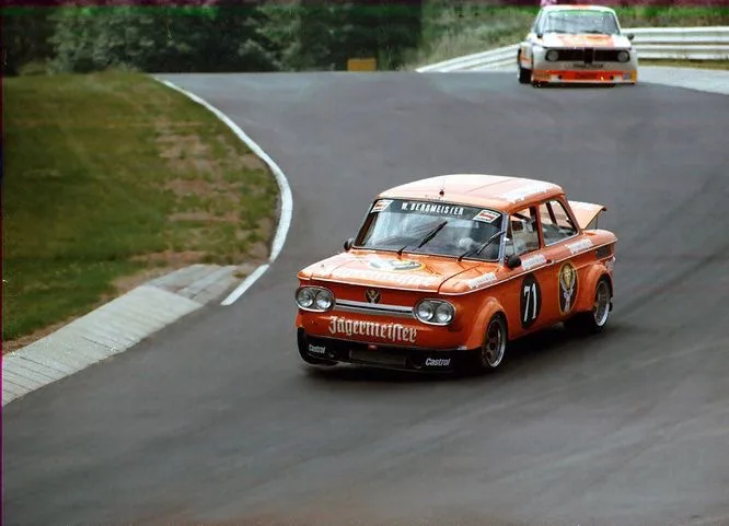 1975 Nürburgring 6h, NSU TTS. Willi Bergmeister raced this little NSU for many years in hillclimbs and on race tracks scoring many class wins. One of his greatest achievements was during the 6-hour race for the European Touring Car Championship in 1975. The little 1300 cc NSU finished 4th overall behind 3 BMW 3.0 CSL’s beating the 2002’s and some big Opel Commodores, and of course it won its class.